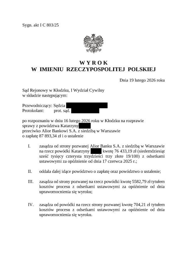 “Profesjonalne podejście i pełna transparentność na każdym etapie sprawy. Otrzymałam szczegółowe informacje, a cała procedura przebiegła sprawnie. Udało mi się odzyskać sporo pieniędzy, które już prawie spisałam na straty. Zdecydowanie polecam!"